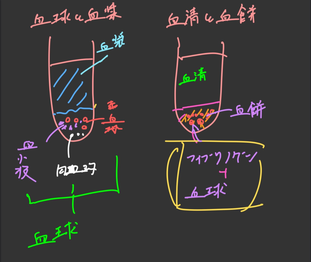 今回の問題の通り、間違えやすいのは、血漿と血清の違いです。