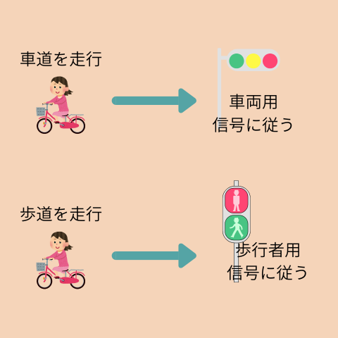 こちらは自分が車道、歩道どちらを進行しているかでルールが変わります。