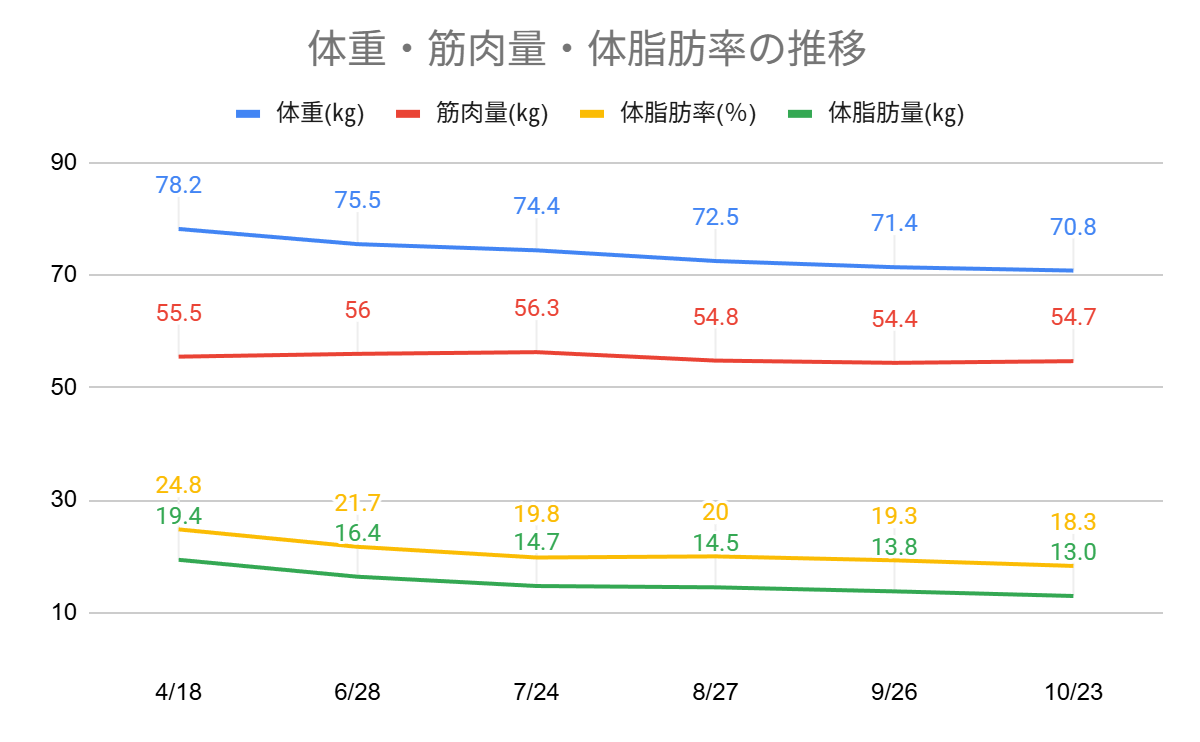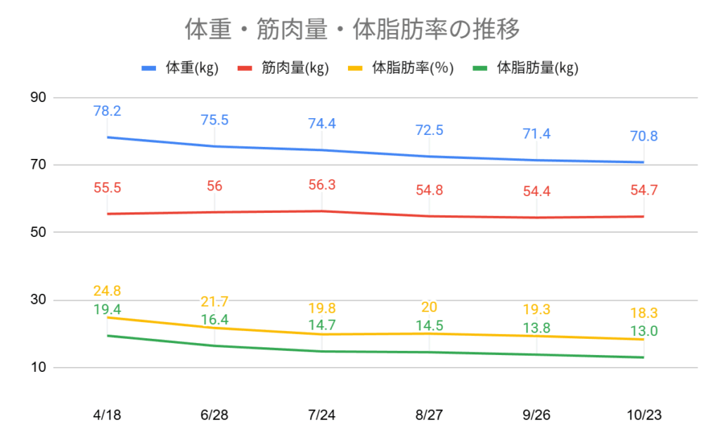 今年の4月より減量を開始。10月で6か月間実施しました。