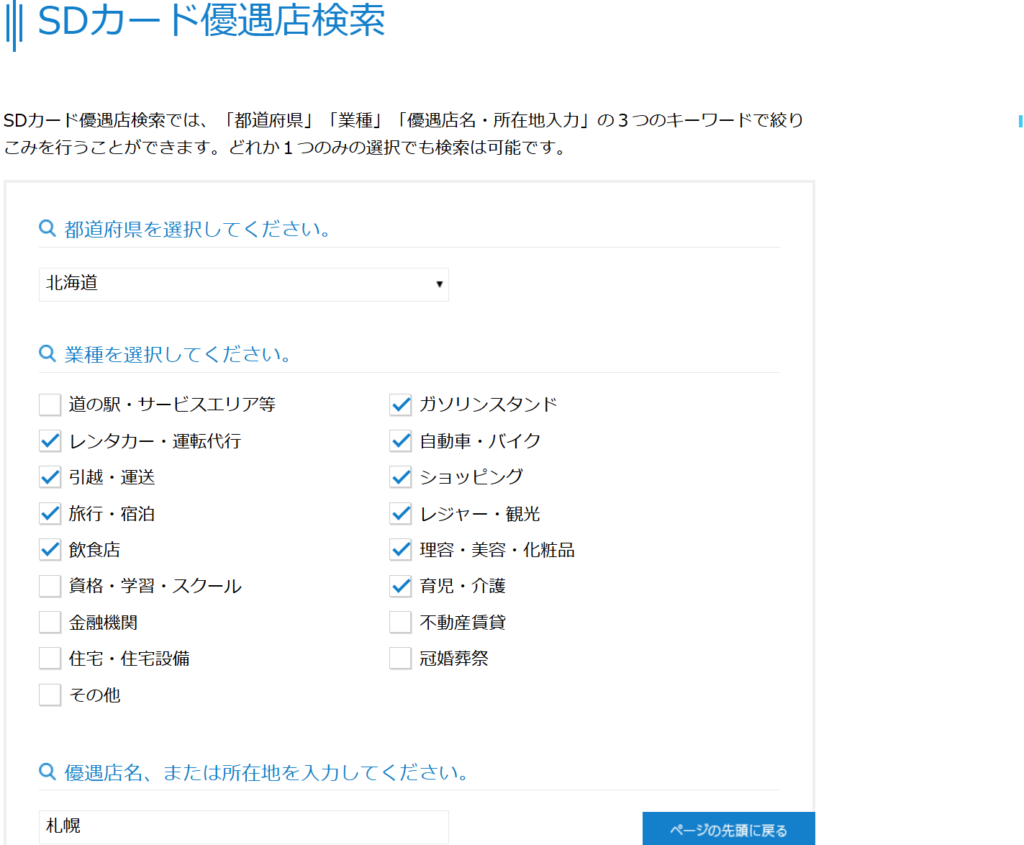 まずは、SDカード優遇店検索ページで確認してみてください!